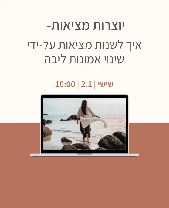 נפשט ידע גבוה על יצירת מציאות ונוריד אותו לקרקע, לתהליך ברור ופשוט שתוכלי ליישם לבד — בכל פעם שאת מרגישה תקיעות.